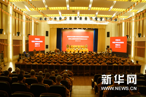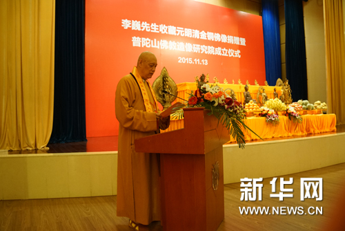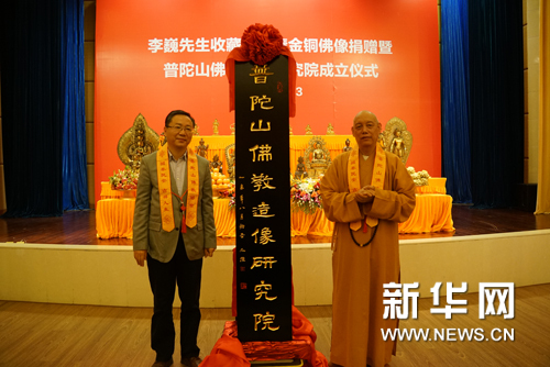 11月13日上午,普陀山佛教协会在中国佛学院普陀山学院国际会议中心举行了普陀山佛教造像研究院成立揭牌仪式。