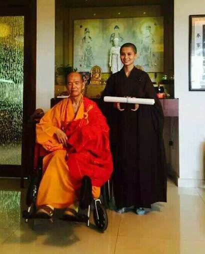 其实从2010年起,体慧长老就邀请我担任法会等大事的维那师,这时才发觉自己的声音竟是这般美妙动听,由于天籁音质和超凡脱俗的气质,体慧长老给我又起了个名:释妙乐。也是与体慧长老有着深厚的宿世因缘吧,今年五月,体慧长老把华严宗传法给了我,现在是华严宗第十四代传人。