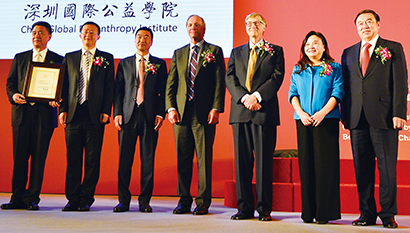 11月12日,中国首个国际公益学院——深圳国际公益学院成立仪式在钓鱼台国宾馆举行。比尔·盖茨、马云等中美百余名慈善家、企业家现场见证这一时刻。民政部副部长邹铭表示,学院的成立和相关业务的开展,将大力推动中国的慈善部门参与构建广泛的利益共同体、参与全球经济治理和公共产品供给。