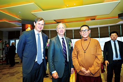 阿字仁波切与比尔盖茨、马云等中美著名慈善家。(图片来源:北京生根慈慧公益基金会)