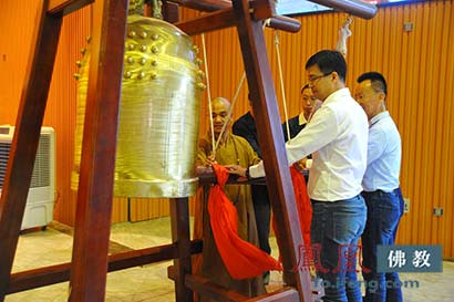 雪峰禅寺住持法度法师与嘉宾撞钟祈福(图片来源:凤凰佛教)