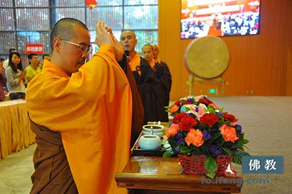 雪峰禅寺住持法度法师致开幕词(图片来源:凤凰佛教)