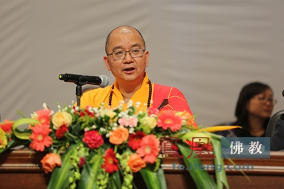 中国佛教协会会长学诚法师在开幕式上作重要讲话。(图片来源:凤凰佛教摄影:李保华)