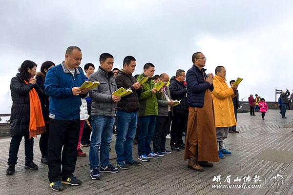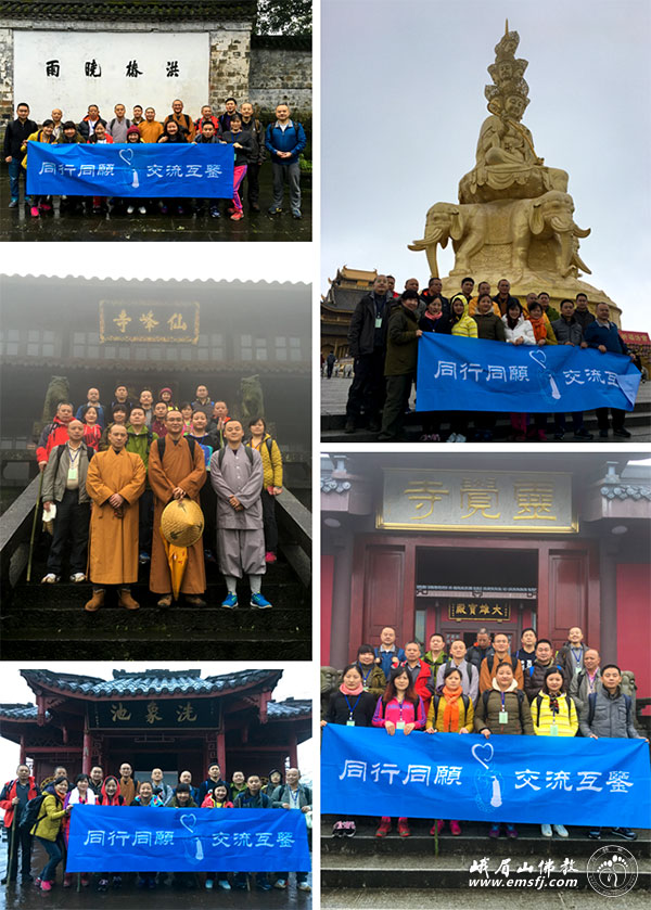 20日,来自全国各地的十余位有佛缘与善缘的“行愿人”在基金会理事长满霖法师、秘书长昌林法师带领下,冒着蒙蒙细雨,开始了行愿旅程。他们沿途参访大佛禅院、报国寺、伏虎寺、圣水禅院、清音阁、洪椿坪、仙峰寺、洗象池、灵觉寺、接引殿、金顶等寺庙,并在各寺院次第发愿践行普贤菩萨十大行愿。此次行程是第一次走B线,路程相较A线远15里,吃住条件稍差,但可欣赏到更绝美的峨眉秀色。第一晚宿洪椿坪,大众第一次看到了民国初年刻制、堪称珍稀文物的千佛莲灯,无不为其精美之工艺、保存之完美赞叹。次日,在美丽如画的仙峰寺、九老洞,大众朝拜了财神赵公明,并吃上了仙峰寺精心准备的罗汉菜、泡菜,虽是粗茶淡饭,但其美味让大家心生大欢喜,让大家明白吃什么不重要,心情、环境与同餐者才是重点。告别仙峰寺,雨势渐缓,继续前行,夜宿洗象池。最后一天,大家相互鼓励,脚步坚实,沿途欣赏水墨画般的风景,并在金顶观赏到云海和远方的瓦屋山、贡嘎雪山,皆感叹此次行程殊胜难得,特别是金顶的云海、明媚的阳光和罕见的佛光圆满了今年慈善行的收官之行。