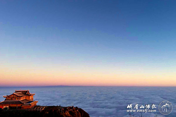 登顶之时,太阳从地平线升起,顿时朝霞满天,万道金光射向大地,峨眉山宛似从头至脚逐渐披上金色的大氅,呈现出它全部的秀美身姿。此时此刻,天上地下变成金色的世界