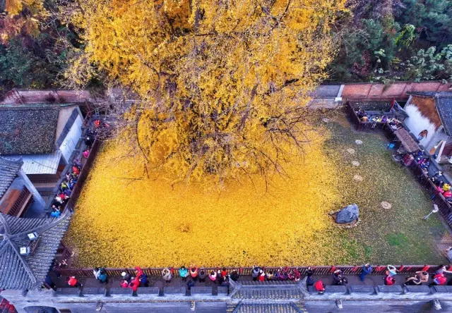 古刹银杏树爆红后 1400年寺庙被网友"攻陷"