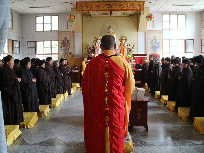 15日下午该寺住持觉平法师主法熏坛结界起七,至22日佛七结束,七天当中德凯法师引用《净土五经》中的教理同大家一起学习,为大家讲解了净土法门信愿具足的重要性,及念佛方法,并为大家答疑解惑,排解了居士们修行中的疑惑,坚定了大家对阿弥陀佛和极乐净土的信心。