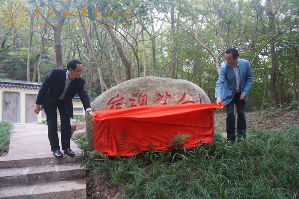 图4:普陀山管委会主任蒋志伟先生(右)与市档案局局长张伟平先生(左)共同为“白华碑岭”揭碑