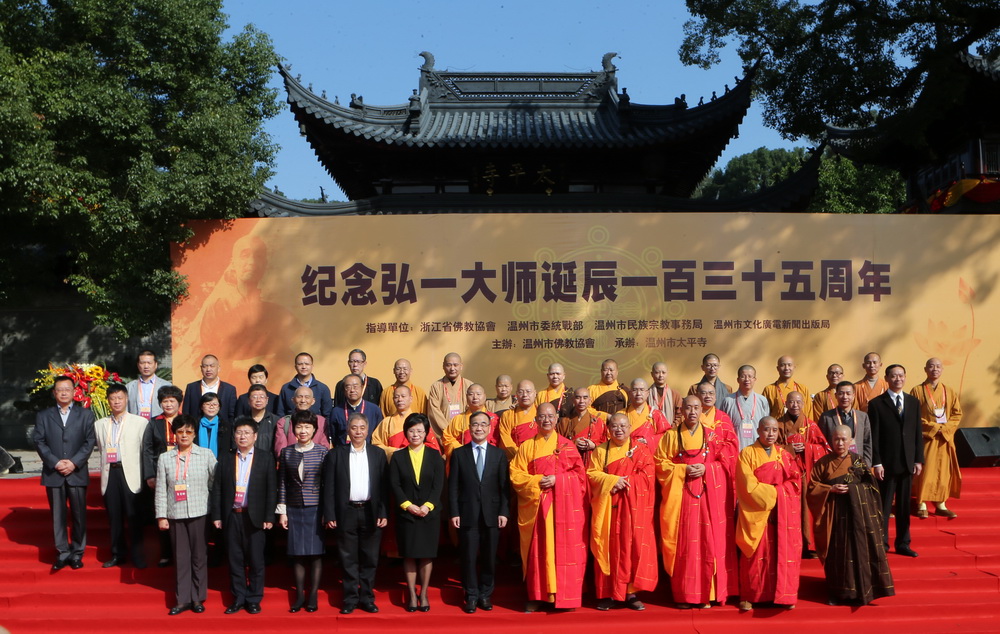 2015年11月2日,由温州市佛教协会主办的纪念弘一大师诞辰135周年的活动在承办方太平寺广场举行,会议由温州市委统战部副部长、市民宗局局长陈锋进主持,浙江省佛教协会副会长、温州市佛教协会会长江心寺方丈智明法师、温州市统战部施艾珠部长、浙江省佛教协会会长奉化雪窦寺方丈怡藏法师、浙江省民族宗教事务委员会冯志礼主任、中国佛教协会会长学诚法师分别致辞,杭州灵隐寺方丈光泉法师应邀出席。