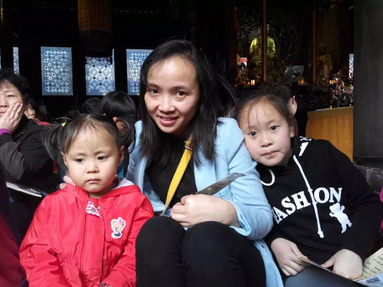 彭女士带着两个女儿一起来皈依,小女儿妙韦3岁,大女儿妙勤8岁,两个孩子都随着大家像模像样的问询、礼佛、称念自己的法名,虔诚的模样十分逗人喜爱。彭女士希望女儿从小接触佛法、学习佛法,拥有光明的人生。