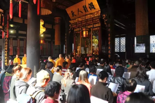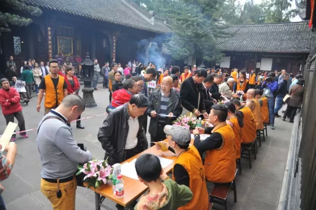11月1日,秋阳高照,文殊院举行2015年第十次皈依法会,善男信女423人齐聚大雄宝殿,迎来生命中第一个“佛化生日”。 弘法利生部总干事照证法师在皈依前为大家介绍三皈依仪轨,并启发大家思考三个问题:为什么皈依?皈依有何意义?佛法对自己有何利益?法师讲到皈依发心的三个层面,第一是为自己的幸福而皈依,第二是为了孩子、家庭、父母、朋友的幸福而皈依,第三是为了所有人的幸福快乐皈依,希望大家如同进文殊院的三重殿堂一样,扩大心量,步步深入,圆满皈依功德。皈依三宝如同“心灵重生”,是生命中的第二个生日,希望大家记住今天,年年都来文殊院过“佛化生日”。 “人生最大的幸福莫过于学佛”文殊院西堂堂主本一法师为本次皈依法会的主法阿阇黎。法师登座后,即赞叹大家今天来参加皈依法会非常稀有难得。 法师为大家讲解了“三宝”的内涵,法师说皈依不只是为了求福,而是要按照诸佛菩萨的教导,增加智慧,去除烦恼;培养慈悲心,利益他人。法师还谆谆教导大家要孝敬父母,父母是堂上活佛,不孝父母,烧再多的香也不管用。在单位要与上下级、同事和谐相处,在家里要多承担责任。不要皈依学佛后就搞分化,“我是学佛的,你们是不学佛的”,无论在哪里,都要随环境转换角色,尽好自己的责任与本分,用行动来感染他人,做一个言行一致的佛弟子。 随后大众随主法阿阇黎、诸引礼师一起忏悔往昔所造诸恶业,以清净身心尽形寿皈依三宝,并发愿“众生无边誓愿度、烦恼无尽誓愿断,法门无量誓愿学,佛道无上誓愿成”,种下未来成佛之因。三皈依毕,大众并以皈依功德回向一切有情众生同生西方极乐世界。