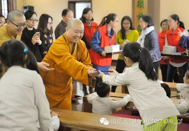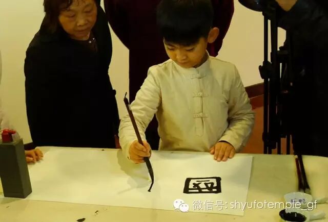 觉醒大和尚为孩子们亲授毛笔等学习用品