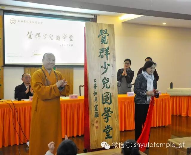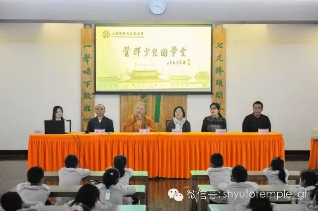 11月1日,由上海觉群文教基金会主办的觉群少儿国学堂在玉佛禅寺举行了开班典礼。全国政协委员、中国佛教协会副会长、上海玉佛禅寺方丈、上海觉群文教基金会理事长觉醒大和尚,特邀嘉宾、觉群慈爱功德会副理事长杨文瑛居士、国学堂老师、百余位学生及家长一同参加了开班典礼。