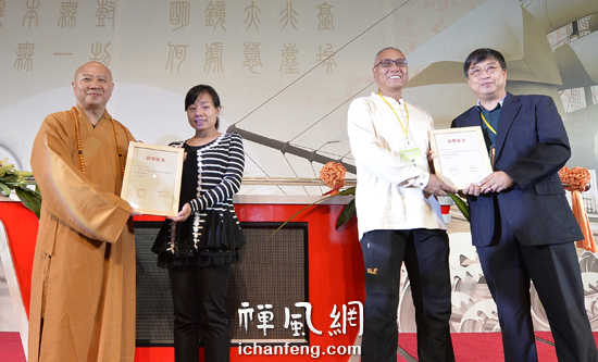 明生法师等为摄影展银奖、铜奖获得者颁奖(摄影:禅风网王贝)