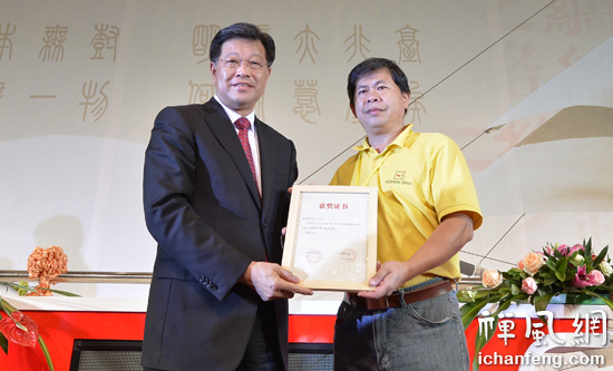 广东省委常委、统战部部长林雄为中国佛教与海上丝绸之路摄影展金奖获得者颁奖(摄影:禅风网王贝)