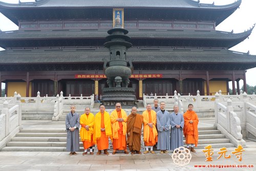 参访团一行受到了重元寺监院本觉法师、副教务长宗泽法师、知客同修法师的热情接待。重元寺方丈秋爽大和尚对祜巴龙庄勐大长老一行的到来表示热烈的欢迎,并带领参访团一行参观了重元寺。