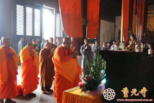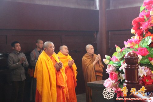 2015年11月29日,应重元寺方丈秋爽大和尚的邀请,中国佛教协会副会长、云南佛学院西双版纳分院院长、西双版纳总佛寺主持祜巴龙庄勐大长老,云南西双版纳傣族自治州佛教协会副会长、云南佛学院西双版纳分院顾问、曼达佛寺住持都香法师,中国佛教协会副秘书长、云南佛学院西双版纳分院副院长、西双版纳傣族自治州景洪市佛教协会会长、法住禅林住持都罕听长老一行赴重元寺参访交流。