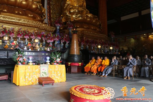 重元寺新建成于2007年 ,地处风景秀丽的阳澄湖半岛之中。水上观音阁和主寺庙区相互呼应,表现出水天佛国的江东最大观音道场特色。观音阁中的大慈大悲观音像高 33米,由88吨重的青铜铸造,表面贴金,法相极为庄严,为国内室内观音之最。禅院中有国内最大的大雄宝殿。钟楼中悬吊唐朝第一声第一律梵音大钟,鼓楼中安置有国内最大的铜腔皮革鼓。
