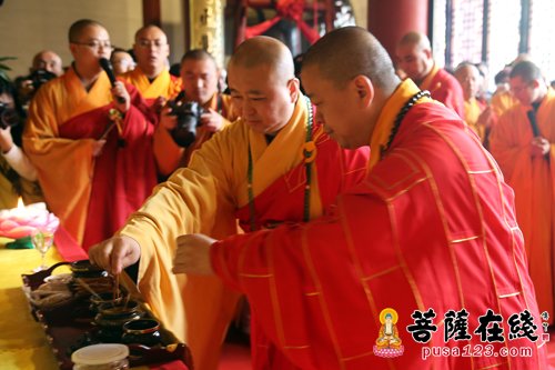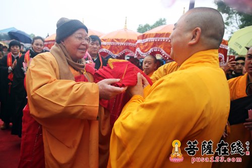 出席庆典的高僧大德有:中国佛教协会副会长、玉佛寺方丈觉醒大和尚,中国佛教协会副会长、江西省佛教协会会长、南昌佑民寺方丈纯一大和尚,中国佛教协会副秘书长、上海市佛教协会会长、静安寺方丈慧明大和尚,中国佛教协会副秘书长、浙江省佛教协会副会长、杭州市佛教协会会长、灵隐寺方丈光泉大和尚,上海市佛教协会名誉会长、真如寺法主妙灵长老,上海市佛教协会副会长、上海沉香阁住持定慧法师,上海市佛教协会副会长、万佛阁住持性康法师,上海市佛教协会副会长、法藏寺住持光慧法师,上海市佛教协会副会长、宝山净寺方丈世良大和尚,上海浦东新区佛教协会会长、法华学问寺开山宗长大熙法师,江苏省佛教协会副会长、南通市佛教协会会长、广教寺方丈俊才大和尚,江苏省佛教协会副会长、无锡市佛教协会会长、南禅寺方丈能开大和尚,上海市佛教协会副秘书长、金山区佛教协会会长、东林寺方丈广德大和尚,上海市佛教协会副秘书长、奉贤区佛教协会会长、东海观音寺主持慧芝法师,上海金山区佛教协会副会长、万寿寺方丈续建大和尚,浙江省绍兴市佛教协会副会长、安康寺方丈法弘大和尚,上海青浦区佛教协会会长、报国寺住持昌智法师,上海天光寺住持能照法师、上海二严寺住持智能法师,上海松隐禅寺法定法师等。