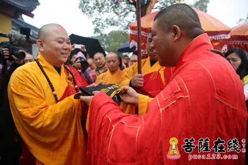 中国佛教协会副会长、玉佛寺方丈觉醒大和尚致辞:表示灵宏法师荣膺南山古寺方丈乃是众望所归,而在今后的寺院建设中,灵宏法师将承担更为重要的责任。希望南山古寺在灵宏法师住持下,法脉兴隆、利益众生。