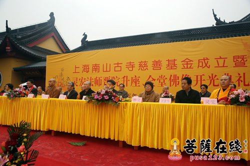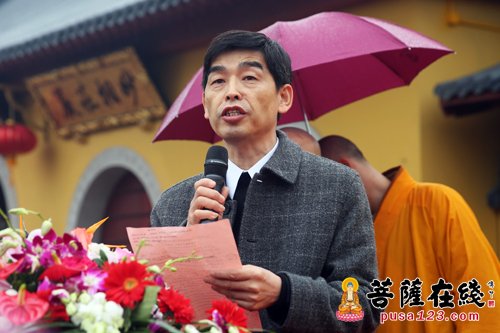 上海浦东新区统战部副部长、民宗委主任钟翟伟先生致辞:南山古寺全堂佛像开光暨灵宏法师升座法会,是佛教界的一大盛事。在此我表示热烈的祝贺!南山古寺将新场镇、浦东新区佛教界产生良好的影响,对进一步提升南山古寺的知名度具有重要意义。衷心希望社会各界在南山古寺今后的发展中,给予更多的指导和支持。我们相信,在党和政府的领导下,在佛教协会的指导下,在灵宏法师的住持下,通过全体僧众和护法居士的共同努力,一定会将南山古寺建设成为“见和同解、戒和同修、利合同均、身和同住、口和无争、意和同悦”如法如律四众弟子共修和和道场。为浦东新区佛教文化,和谐社会作出应有的贡献!