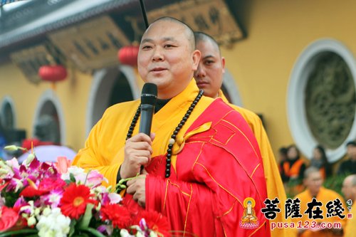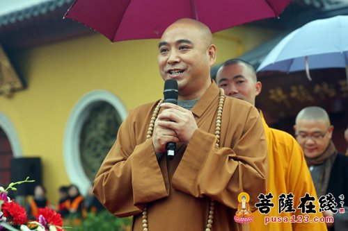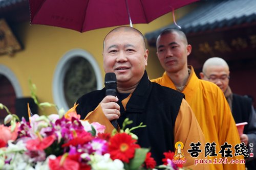 上海浦东新区佛教协会副会长、本寺方丈灵宏法师致欢迎辞:“今天,南山古寺高朋满座、群贤毕至、四众云集、龙天欢喜、天降甘露。有劳诸位莅临指导护持,在此,我谨代表南山古寺两序大众,对各位的到来表示热烈的欢迎和衷心的感谢,承蒙各级领导和前辈大德的栽培以及四众弟子的信任与支持。祝所有来宾福慧增长,授佛法的加被,六时吉祥、合家幸福。