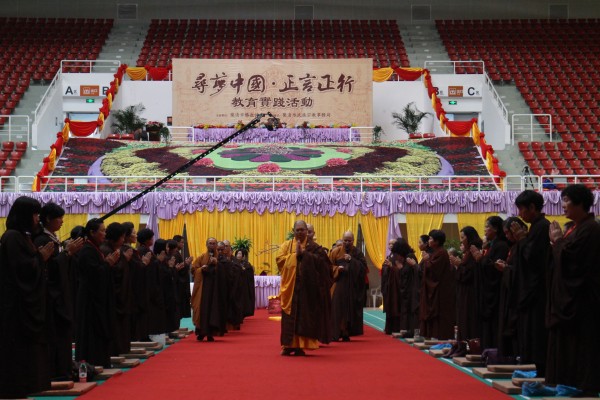 2015年11月22日,为响应习主席的号召,实现中华民族伟大复兴的中国梦,为市委市政府提出的“五市六城”建设,为净化人心、和谐社会、繁荣乐清,由乐清市民族宗教事务局指导、乐清市佛教协会主办的“寻梦中国 正言正行”教育实践活动,如期在乐清市体育中心正泰体育馆举行,当日来自温州市和乐清市及周边县市各寺院的法师和居士有四千多人沐浴在法喜中,虔诚聆听着法师们的法音。本次教育实践活动是弘扬优秀的佛教文化,传播社会正能量,更是表达我们乐清佛教界人士对中华传统文化复兴的真挚情怀和一份社会责任。