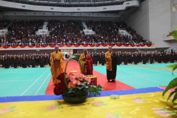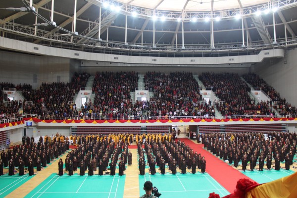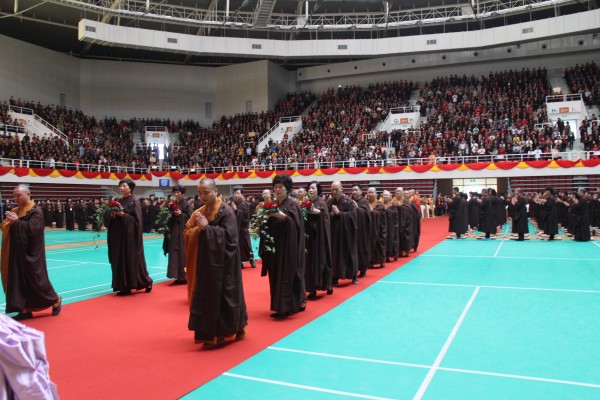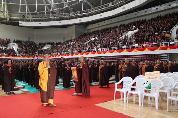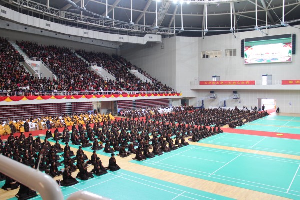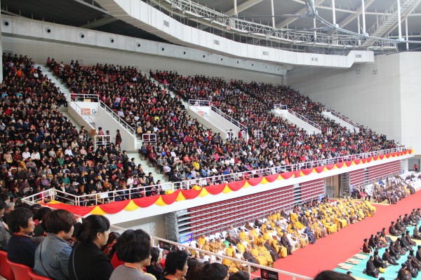 在乐清市体育中心正泰体育馆聆听佛法的四众弟子