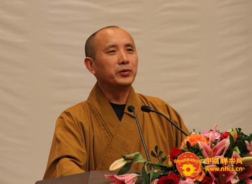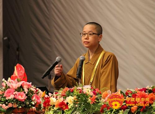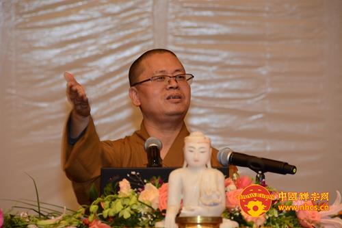 下午的两场示范讲经是汉传佛教的两位法师。来自香港的宝莲禅寺方丈净因法师作了主题为《六祖坛经的人生智慧》的示范讲经,戒幢佛学研究所所长济群法师对净因法师的示范讲经进行了点评。