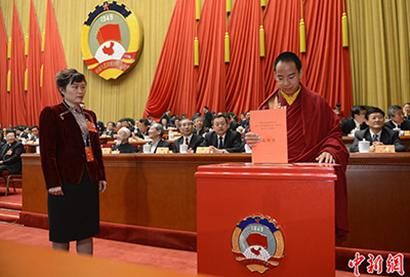 2013年3月11日,班禅参加全国政协十二届一次会议时投票。廖攀摄