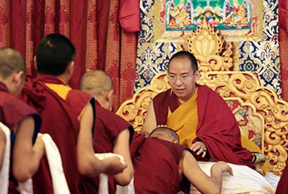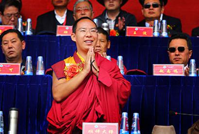 2014年5月18日,班禅接受朝拜并为僧众摸顶赐福。