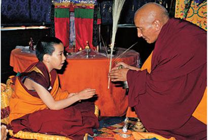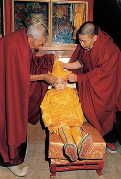 金瓶掣签后,第十世班禅转世灵童坚赞诺布接受剃度。