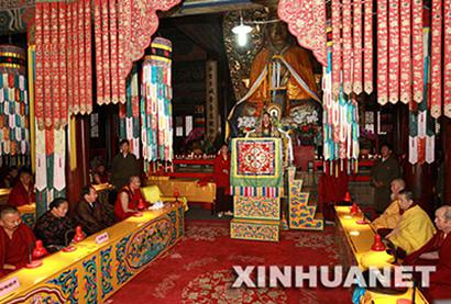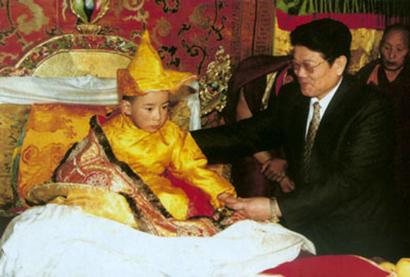 1995年,班禅在国务院代表、国务委员李铁映照护下坐床。
