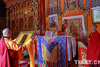 2010年7月4日,班禅为第五世德珠活佛转世灵童真身剃度。觉果摄