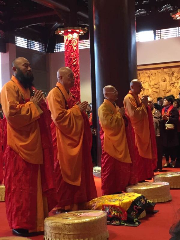 图2:道慈大和尚(左二)与诸山长老为开光法会拈香主法