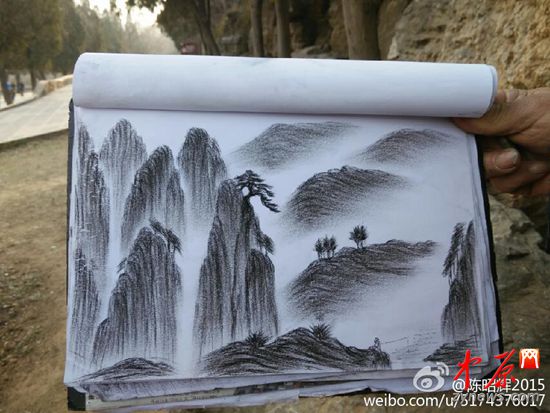 少林寺环卫工自学画画手绘嵩山 被赞现代"扫地僧"