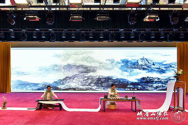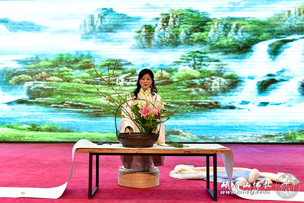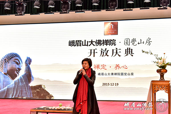 圆觉山房负责人梁爽女士致词,热烈欢迎各位嘉宾的到来,表示要把茶道馆建成佛子及茶人心有所属的心灵家园,为峨眉山佛教文化发扬光大作出贡献。
