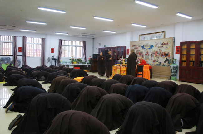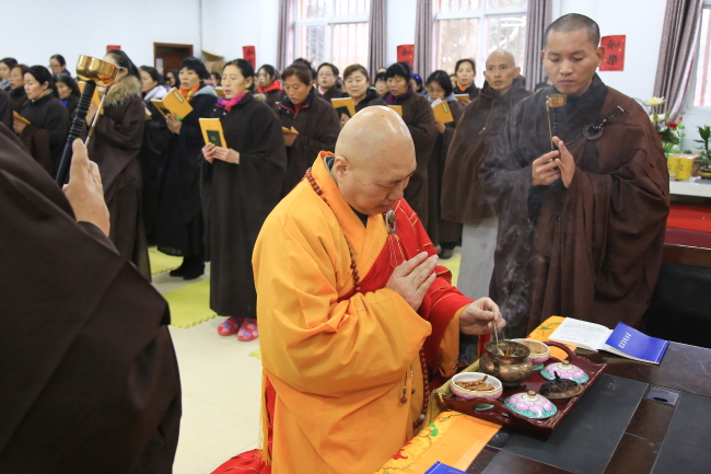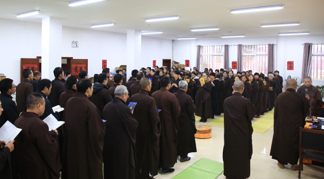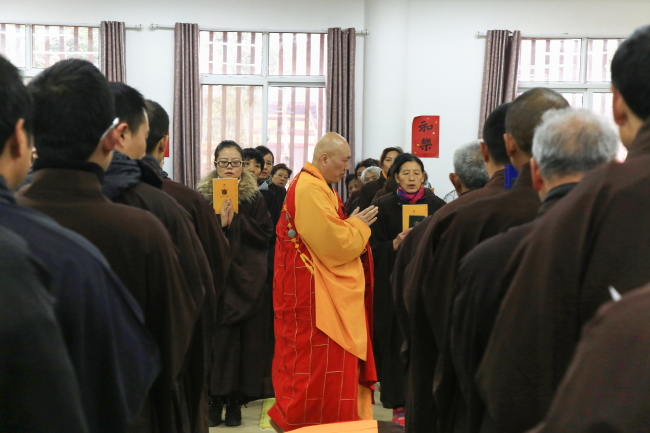 江西九江东林寺为冬季佛七居士授三皈五戒