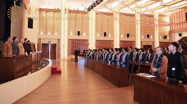 图2:市委统战部、市民宗局、普陀山佛教协会及本院相关领导在主席台就座