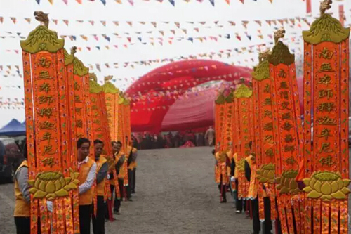 12月4日清晨,霏霏织雨,绵绵不绝,普光禅寺临时搭建的祈福坛场经幡、彩球、彩旗迎风招展,韶乐齐鸣。身着海青的居士列队诵唱“南无本师释迦牟尼佛”圣号为祈福法会护法,先是醒狮锣鼓开道,再接着迎请仪式庄严开始,主法法师在手擎华盖的众居士护持下来到祈福法坛拈香礼佛。