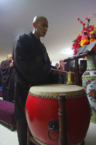 信众随着地钟的节奏,唱念佛号,犹如海潮之音