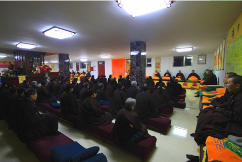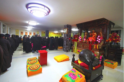 今年的雪下得比往年都要多,外面虽然寒冷刺骨,但是念佛堂中却温暖如春。每一天,大家信心十足,深妙法音、齐声恭唱,一句句的六字洪名声声回响在庄严的佛堂之中。在这舒适美好的环境下,享受着声声佛号给我们带来的清净自在。