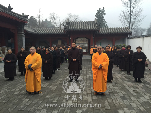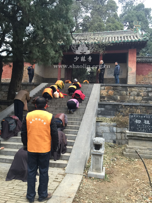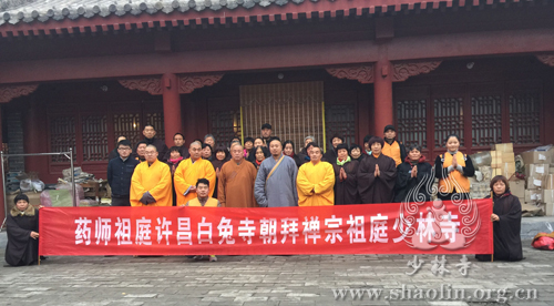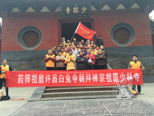 2015年12月9日上午七点,许昌白兔寺延极法师、演照法师、传德法师、源可法师,率领来自全国各地的50余位善信,归山朝拜禅宗祖庭少林寺,并朝拜达摩洞,受到少林寺方丈释永信法师的热情欢迎。在这次朝拜的队伍中,年纪最大的为82岁,最小的为20岁,他们皆发菩提心,将此朝圣之旅作为人生中最重要的一课。
