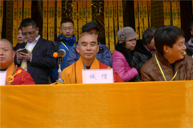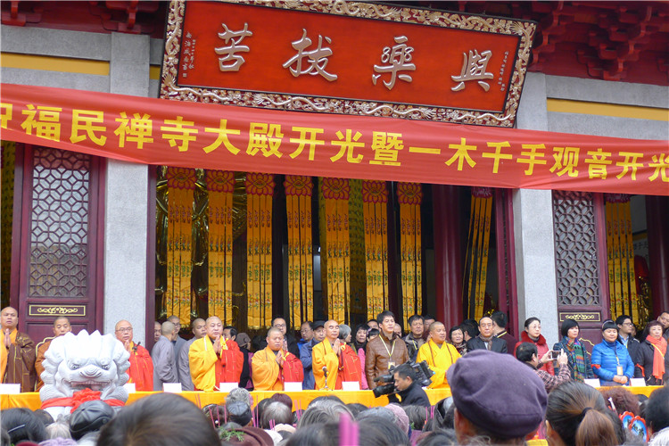 12月6日应金华市佛教协会副会长、兰溪福民禅寺主持印觉法师邀请,浙江省佛教协会副会长、宁波佛教协会会长、宁波天童禅寺方丈诚信大和尚来到金华兰溪福民禅寺,为“福民禅寺大殿开光暨一木千手观音开光大典”致辞并任法会主法,同时出席的还有山东省佛教协会副会长、邢台佛教协会会长果慧大和尚,江西省佛教协会副会长、上饶市佛教协会会长净明大和尚,兰溪市委统战副部长、民宗局局长叶洪甘先生,及各地高僧大德,海内外善信等。