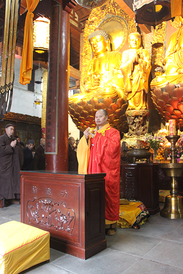 是日法雨普润,龙天欢喜。八时三十分,早板香过后,真如禅寺方丈纯闻大和尚率两序大众举行“洒净”仪式,普净十方,庄严道场。