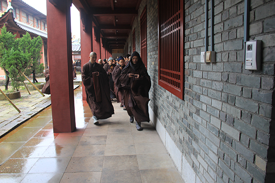 云居山真如禅寺秉承虚云老和尚家风,保持“冬參夏学”的传统。每值冬季,各地班首师父及老参陆续回山,护持禅七。四面八方参学师父与闻讯大众,齐聚云居,于禅堂中用功办道,了生脱死。今年云居山禅七殊胜,大众云集影从。参加的出家师父三百余人,在家居士二百余人(包括来自澳洲、台湾、香港等地的海外信众十余人)。今年特开正觉苑容纳新参师父、在家男众居士。老参比丘师父依旧在西禅堂精进打七。
