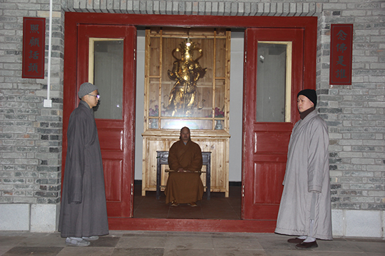 下午四时晚殿结束,两序大众在维那师父带领下,于丈室向方丈和尚告“生死假”,告过“生死假”后,意味着生也打七,死也打七,以期勇猛精进也。
