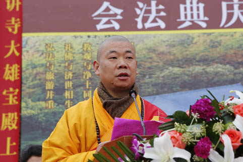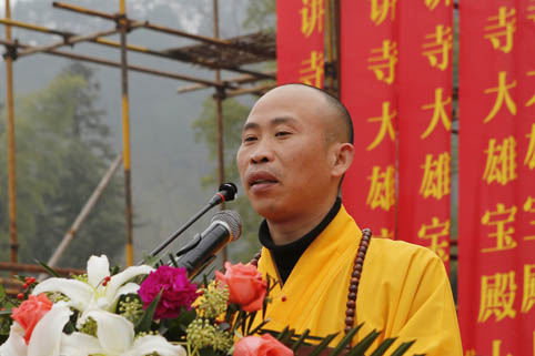 净芳大和尚在贺词中指出,当前正处于千载难逢的太平盛世,国家兴则佛教兴,佛教事业呈现出勃勃的生机。今丹邱讲寺大雄宝殿启建上梁,使护持佛教有地,传道弘法有所,亦为当地建设红色文化园,继承革命传统,促进红色旅游开发相辅相成。衷心期望丹邱讲寺在了文法师和慧华法师的共同努力下,犹如今日大雄宝殿坚实永固的柱梁一样正直担当、厚德载物,把寺院的社会价值发挥到最大化,为实现中华民族伟大复兴的中国梦,为释放佛教正能量提供更加广阔的空间。为三门县广大佛教信众提供最大的修学方便,为亭旁的历史人文传承以及繁荣发展、和谐平安奉献最大的力量。