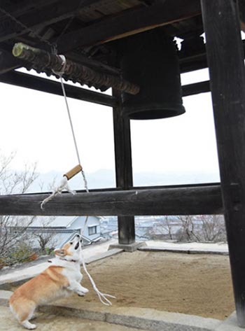 据日媒报道,再过几天,崭新的2016年即将来临。在日本广岛县府中市,一只会撞钟的狗狗近来在该国网络上成为热门话题。