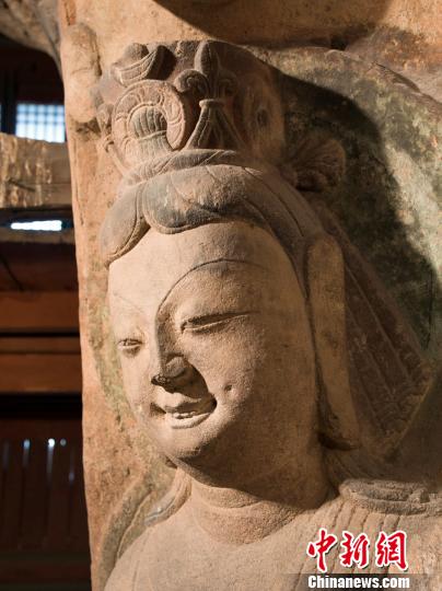 中新网太原1月4日电(胡健)记者4日从山西省云冈石窟研究院获悉,在此间举行的“云冈石窟研究院职工书画摄影雕塑作品展”上,一幅云冈第8窟后室南壁明窗西侧壁的合掌露齿供养菩萨摄影作品,引起民众关注。该院研究员张华表示,露齿菩萨像在世界佛教领域极为罕见。